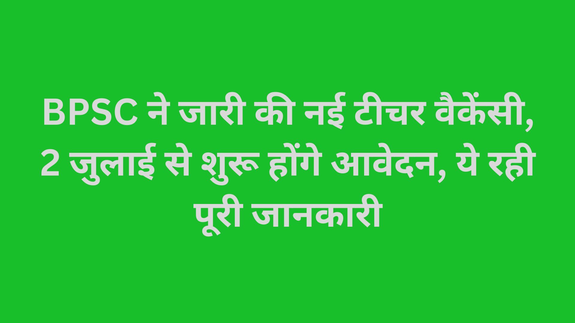 BPSC ने जारी की नई टीचर वैकेंसी, 2 जुलाई से शुरू होंगे आवेदन, ये रही पूरी जानकारी