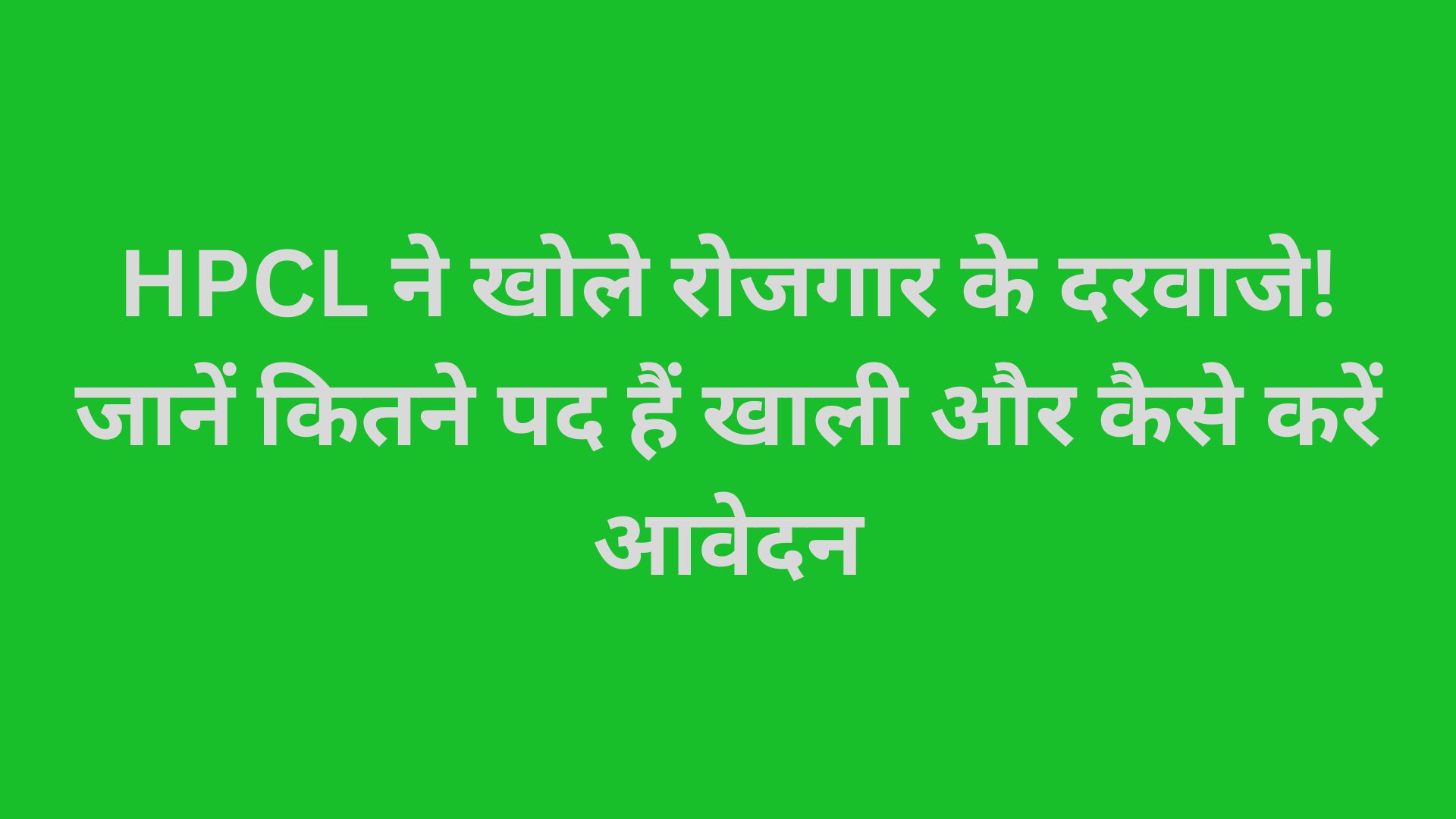 HPCL ने खोले रोजगार के दरवाजे! जानें कितने पद हैं खाली और कैसे करें आवेदन