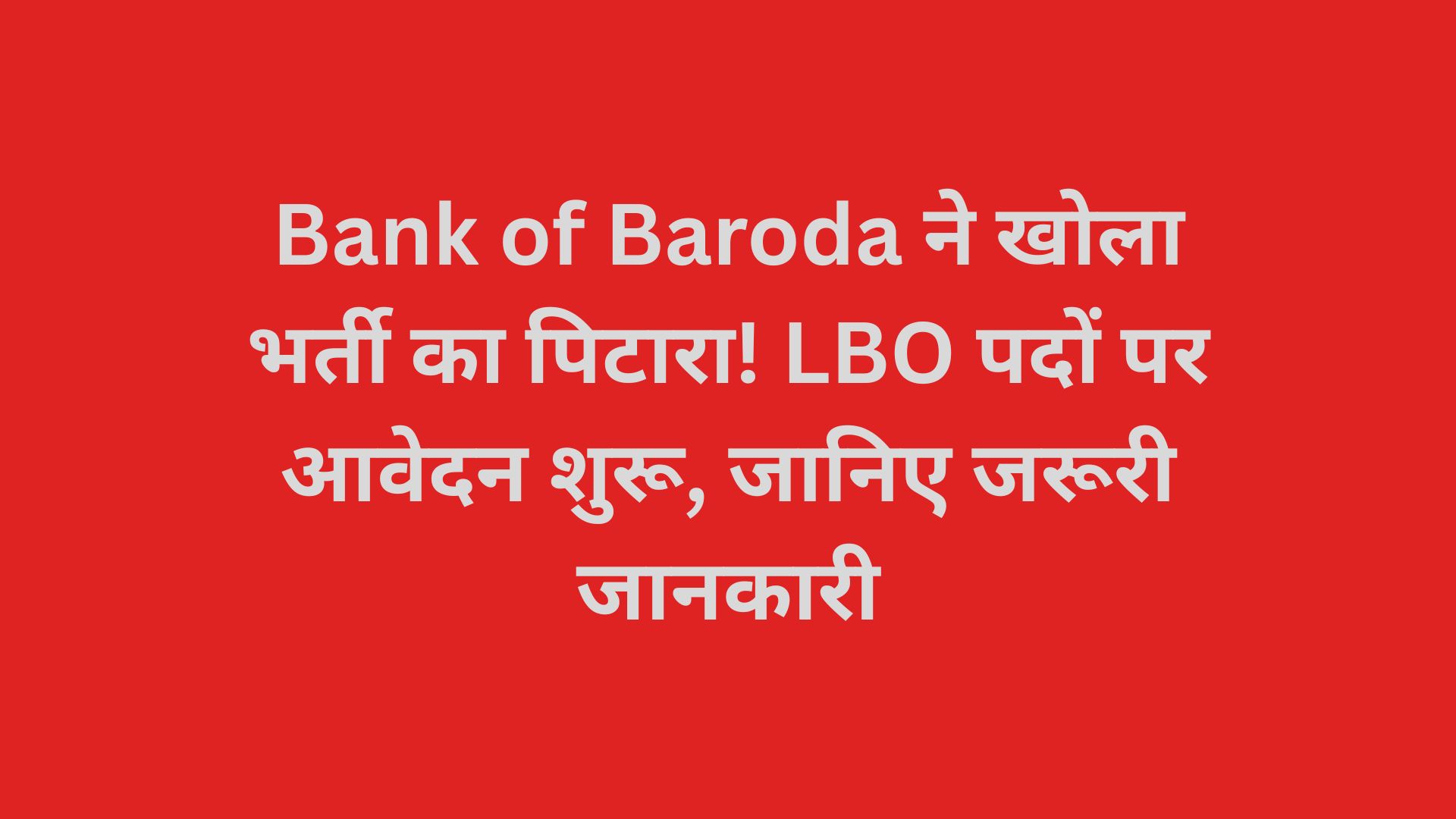 Bank of Baroda ने खोला भर्ती का पिटारा! LBO पदों पर आवेदन शुरू, जानिए जरूरी जानकारी