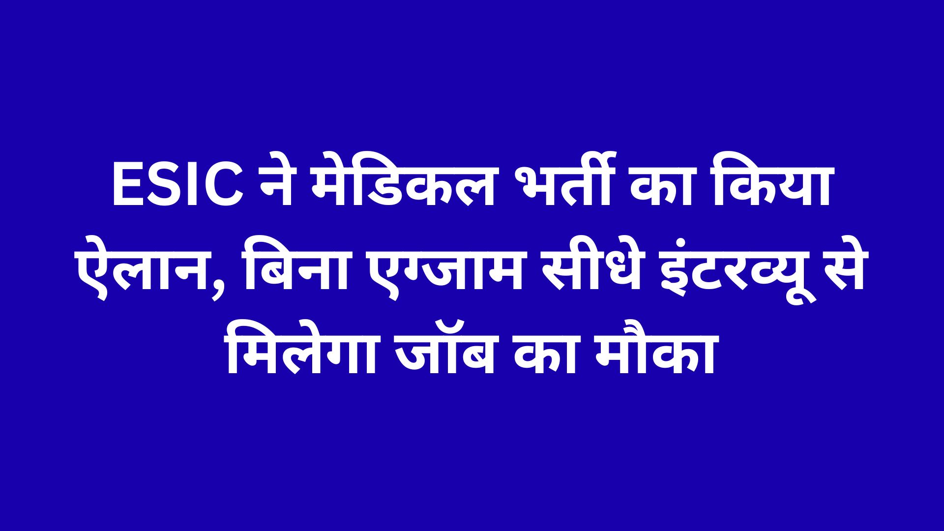 ESIC ने मेडिकल भर्ती का किया ऐलान, बिना एग्जाम सीधे इंटरव्यू से मिलेगा जॉब का मौका