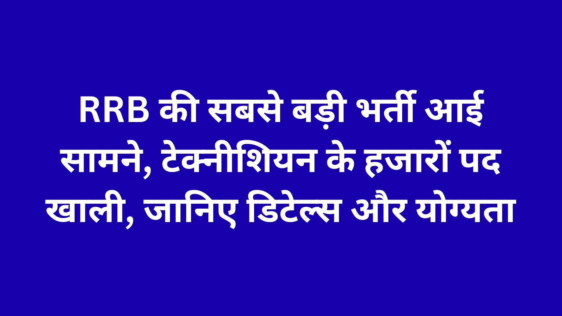 RRB की सबसे बड़ी भर्ती आई सामने, टेक्नीशियन के हजारों पद खाली, जानिए डिटेल्स और योग्यता