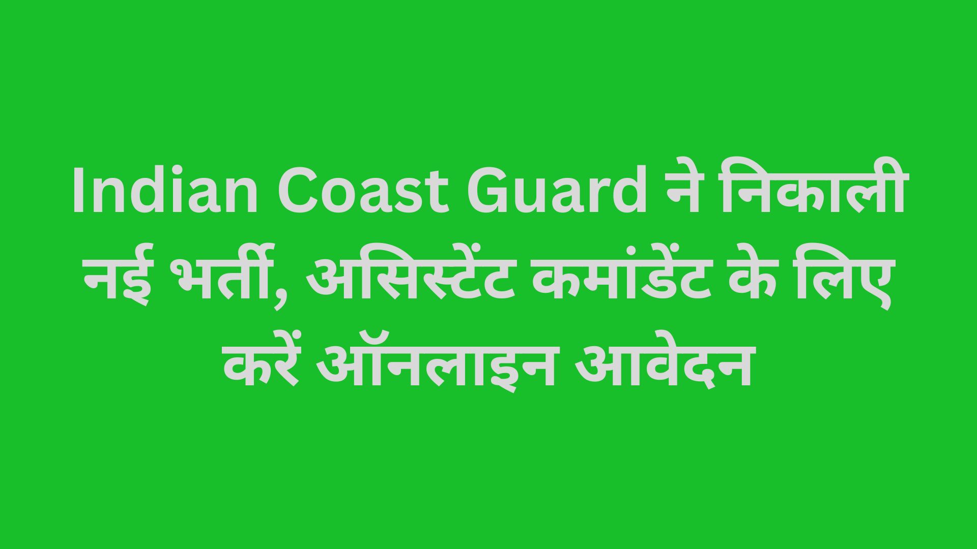 Indian Coast Guard ने निकाली नई भर्ती, असिस्टेंट कमांडेंट के लिए करें ऑनलाइन आवेदन