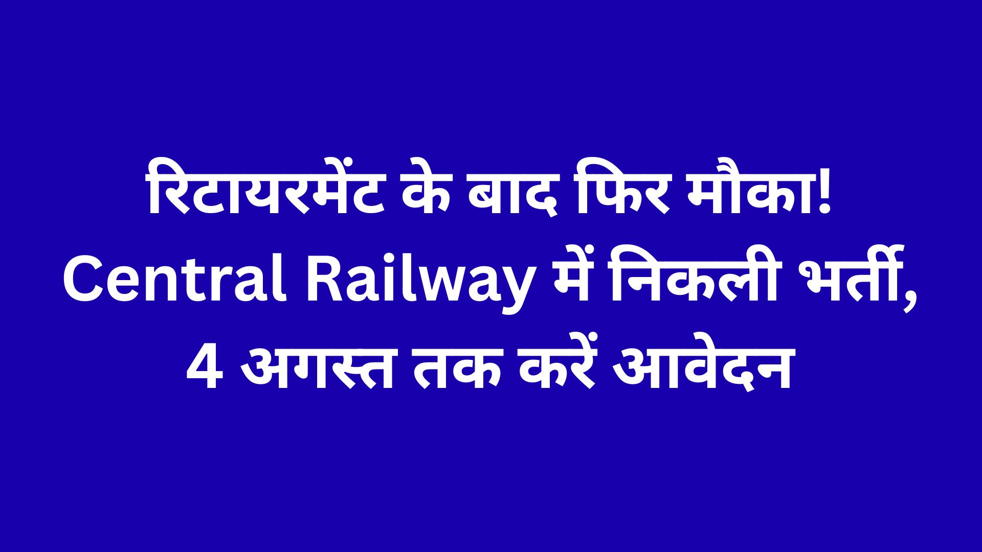 रिटायरमेंट के बाद फिर मौका! Central Railway में निकली भर्ती, 4 अगस्त तक करें आवेदन