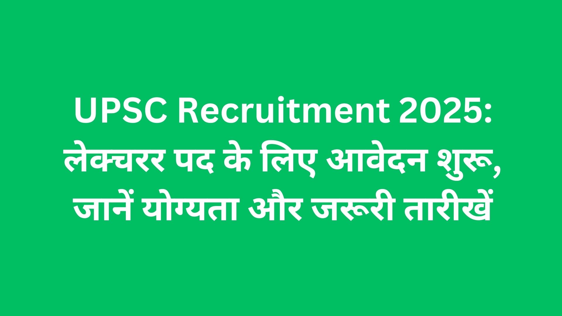 UPSC संघ लोक सेवा आयोग द्वारा लेक्चरर के खाली पदों पर भर्ती के लिए सूचना…