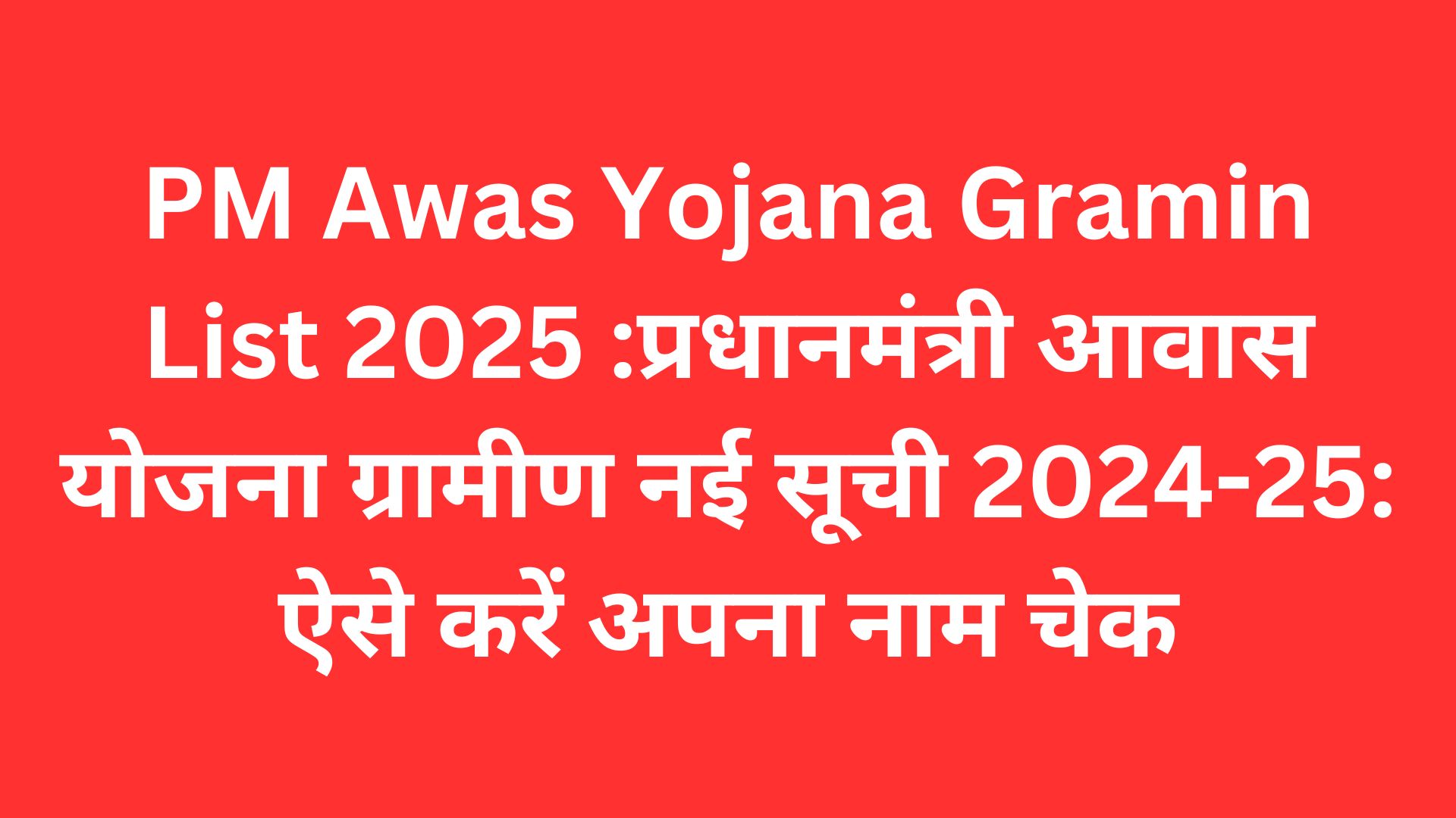 PM Awas Yojana Gramin List 2025 :प्रधानमंत्री आवास योजना ग्रामीण नई सूची 2024-25: ऐसे करें अपना नाम चेक