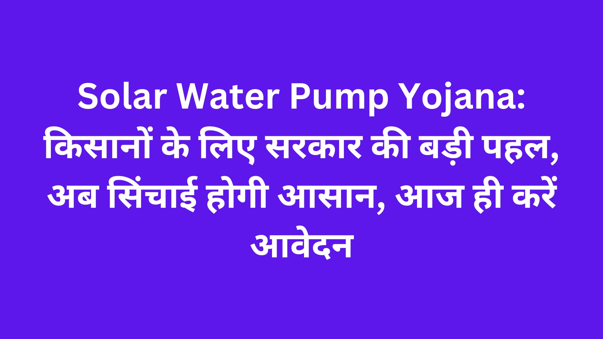 Solar Water Pump Yojana: किसानों को अब अपने खेतों की सिंचाई के लिए महंगे डीजल या…