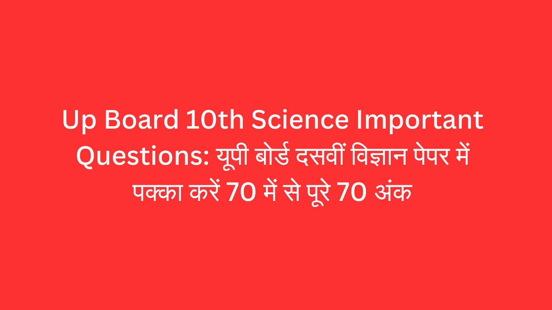 Up Board 10th Science Important Questions: यूपी बोर्ड दसवीं विज्ञान पेपर में पक्का करें 70 में से पूरे 70 अंक